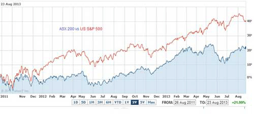 As investors, Australians are very focused on Australian investments. This can be to our detriment, as there are significant international investment opportunities that perform well when our local market does not. As an example over the past 2 years the US Share market has significantly outperformed the local share market, not even taking into account the recent fall in the Australian dollar..