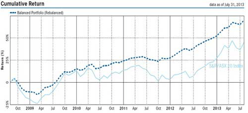 By diversifying your portfolio you can effectively reduce your total risk without reducing your potential for return or conversely increase your potential return without increasing the total level of risk over the long term. For example, a diversified portfolio (which has holdings across all the major asset classes, invests locally and internationally), would have outperformed the ASX top 20 companies over the past 5 years whilst taking less risk.
